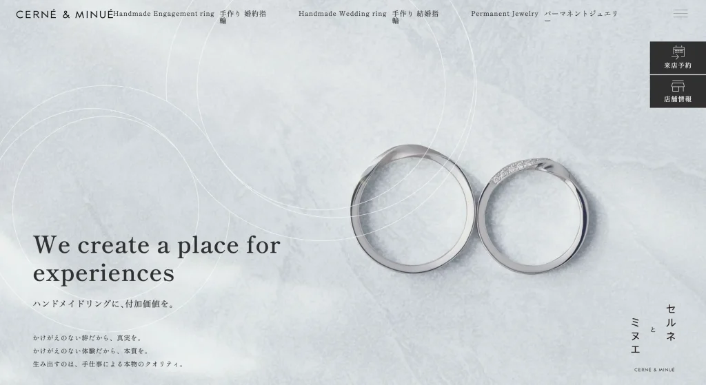 日本最大級のブライダルジュエリーセレクトショップ「ビジュピコ」が運営するCERNÉ&MINUÉでは、専門スタッフがマンツーマンでサポート。素材選びから仕上げまで丁寧に指導してくれるため、初心者でも安心して制作でき、婚約指輪や結婚指輪を自分たちの手で特別な一品に仕上げられます。